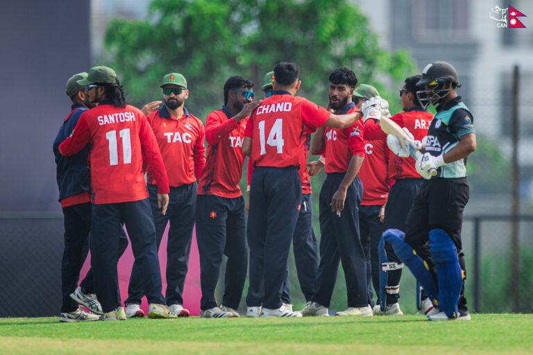 काठमाडौँ । पीएम कपको उपाधि त्रिभुवन आर्मी क्लबले जितेको छ । शुक्रबार भएको फाइनल खेलमा आर्मीले सुदूरपश्चिम प्रदेशलाई ५ विकेटले पराजित गर्दै उपाधि जितेको हो