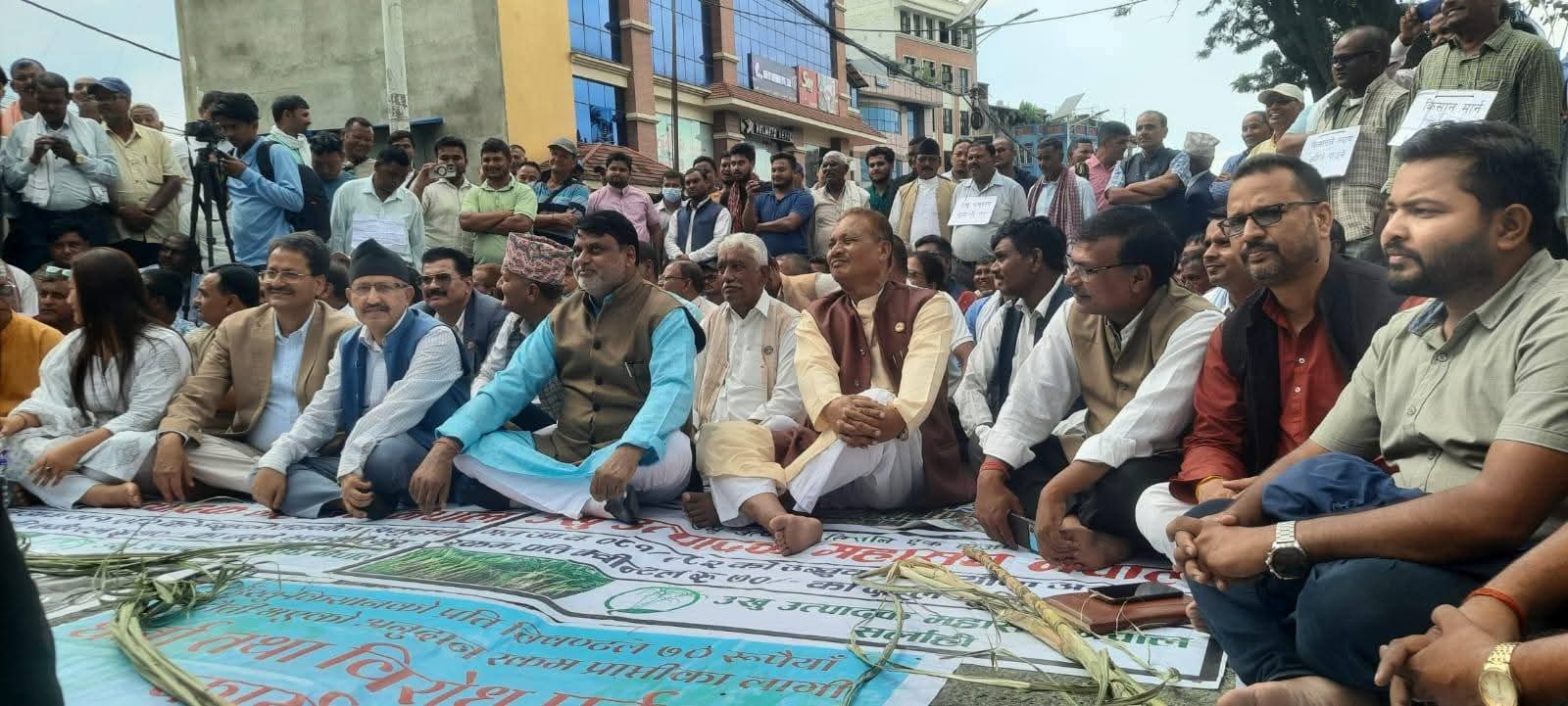 उखु अनुदानको विषयमा आन्दोलित किसानहरूलाई समर्थन जनाउँदै लोसपा मधेश प्रदेश अध्यक्ष तथा पूर्व मन्त्री माननीय जितेन्द्र सोनल स्वयं माइतीघर मण्डलामा आयोजित प्रदर्शनमा सहभागी भएका छन् ।