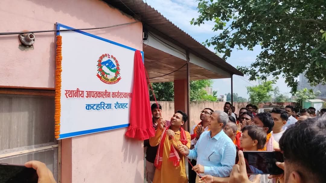 राैतहटकाे कटहरिया नगरपालिकामा आज एक विशेष कार्यक्रमका बीच स्थानीय आपतकालिन कार्यसञ्चालन केन्द्रको स्थापना गरिएको छ । नगर प्रमुख अजय प्रकाश जयसवालको अध्यक्षतामा सम्पन्न कार्यक्रममा प्रमुख अतिथि मुख्यमन्त्री तथा मन्त्री परिषद्को कार्यालयका सचिव एमेन्द्र उपाध्याय र विशिष्ट अतिथि गृह, सञ्चार तथा कानुन मन्त्रालयका बिमल प्रसाद बरालको संयुक्त उपस्थिति रहेको थियो ।