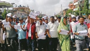 रौतहटकाे गरूडामा नेपाली कांग्रेसका नेता कार्यकर्ताहरूले आज गरूडा नगरपालिकामा शान्तिपूर्ण विरोध प्रदर्शन गर्दै संविधानको रक्षा र जनमतको सम्मानको माग गरेका छन् । प्रदर्शनमा सहभागीहरूले ‘संविधानको रक्षा गर’, ‘राष्ट्रपतिलाई सार्वजनिक गर’, ‘सैनिक शासन चाहिँदैन’ जस्ता नारा लगाउँदै सरकार र संवैधानिक अंगहरूको भूमिकामाथि प्रश्न उठाएका छन् ।