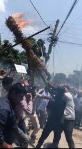 सयौंको संख्यामा रहेका स्थानीयले प्रधानमन्त्री प्रचण्डको पुत्लामा आगो लगाउँदै नाराबाजी गर्न थालेपछि नेपाल प्रहरी र सशस्त्र प्रहरीले आगो निभाएका थिए । प्रधानमन्त्रीको पुत्ला दहनसँगै स्थानीयले संघीय मामिला तथा सामान्य प्रशासन मन्त्री अमनलाल मोदीको राजीनामा समेत माग गरेका छन् । प्रमुख प्रशासकीय अधिकृत पठाउन नसक्ने मन्त्रीले तत्काल राजीनामा दिनुपर्ने भन्दै स्थानीयले नाराबाजी गरेका थिए ।