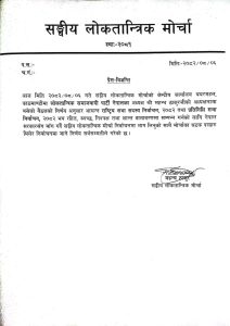 मोर्चाका घटक दलहरू मिलेर संयुक्त रूपमा निर्वाचनमा जाने निर्णय सर्वसम्मतिले पारित भएको बैठकले जनाएको छ ।