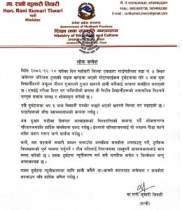 यस घटनाप्रति मधेश प्रदेश सरकारकी शिक्षा तथा संस्कृति मन्त्री तिवारीले गहिरो दुःख व्यक्त गर्दै दिवंगत आत्माहरूको चिरशान्तिको कामना गरेकी छन् । साथै उनले शोकसन्तप्त परिवारजनप्रति हार्दिक समवेदना प्रकट गर्दै यस पीडादायी क्षण सहन सक्ने शक्ति प्रदान गरियोस् भनी ईश्वरसँग प्रार्थना गरेकी छन् ।