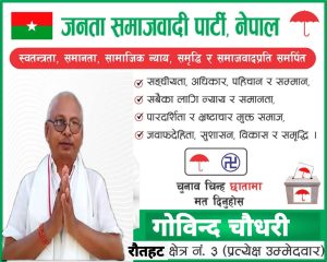 रौतहट । मधेस प्रदेश सरकारका भौतिक पूर्वाधार मन्त्री राजकुमार गुप्ताले रौतहट क्षेत्र नम्बर ३ बाट जनता समाजवादी पार्टी नेपालका प्रतिनिधि सभा सदस्य पदका उम्मेदवार पूर्व मन्त्री गोविन्द चौधरी आफ्नो मार्गदर्शक रहेको बताएका छन् ।