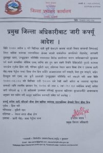 सर्लाही, ५ असोज । जिल्ला प्रशासन कार्यालय सर्लाहीले सदरमुकाममा मलङ्गवा नगर क्षेत्रमा कर्फ्यु आदेश जारी गरेको छ ।