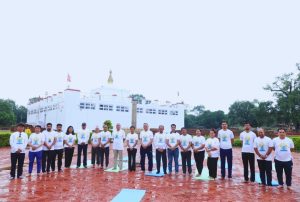 नेपालस्थित भारतीय राजदूतावासले लुम्बिनी विकास कोषसँगको सहकार्यमा असार ६ गते लुम्बिनीमा ११ औं अन्तर्राष्ट्रिय योग दिवस भव्य रूपमा सम्पन्न गरेको छ । भगवान् बुद्धको पवित्र जन्मस्थल तथा युनेस्को विश्व सम्पदा सूचीमा सूचीकृत लुम्बिनीमा आयोजना गरिएको उक्त बृहत् योग प्रदर्शनमा स्थानीयवासी, सरकारी प्रतिनिधि, योग अभ्यासकर्ता र विभिन्न संघसंस्थाबाट प्रतिनिधिहरूको उल्लेखनीय उपस्थिति रहेको थियो ।