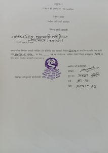 दर्ता प्रमाणित गर्ने कर्मचारी प्रकाश सुवेदी, दर्जा शाखा अधिकृतले प्रमाणिकरण गर्दै मिति २०८२/०८/२२ मा दल दर्ताको सूचना जारी गरेका हुन् ।
