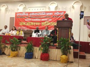 संघीय लोकतान्त्रिक मोर्चाले देशको वर्तमान राजनीतिक परिस्थितिबारे जनतालाई जानकारी गराउने उद्देश्यसहित काठमाडौंबाट एक महिनाको जनजागरण अभियान सुरु गरेको छ ।