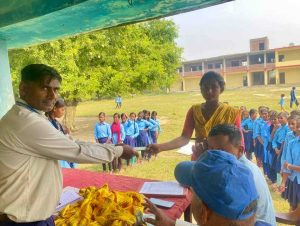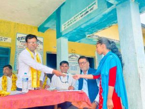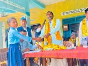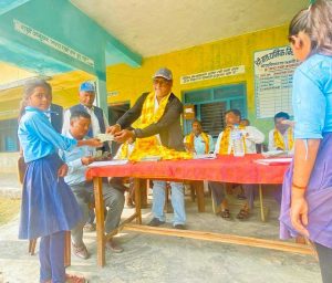साे बिधालयमा अध्ययनरत कक्षा १ देखि ५ सम्मका बिद्यार्थीहरू लाई वितरण गरिएको हाे । बिधालय व्यवस्थापन समितिका अध्यक्ष शम्भु महताे काेईरीकाे अध्यक्षतामा वितरण गरिएको हाे । साथै बिधालय व्यवस्थापन समितिका पदाधिकारीहरू र स्थानीय भद्रभलादमीहरूले बिधालयमा निर्माण भएको भवनकाे हिसाबकिताब प्रअ जयसवाल सँग लिएका थिए ।