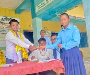 बिधालयका जग्गा दाता श्रीमती भावना बस्नेतले उपलब्ध गराएको ४५ हजार बराबरकाे पाेशाक वितरण भएको हाे । शुक्रबार नगरपालिका बाट आएको आर्थिक २०७९/०८० काे छात्रवृत्ति वितरण गरिएको हाे । बिधालयमा अध्ययनरत सम्पूर्ण छात्रा,दलित छात्र,छात्राहरू लाई कुल ३० हजार ८ सय रूपैयाँ वितरण गरिएको प्रधानाध्यापक संताेष कुमार जयसवालले जानकारी गराउनु भएको हाे ।