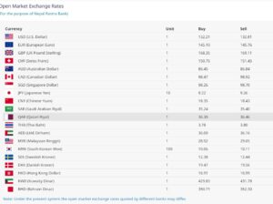 हिजो अमेरिकन डलरको खरिद दर १३२ रूपैयाँ २३ पैसा र बिक्री दर १३२ रूपैयाँ ८३ पैसा रहेको थियो भने युरो एकको खरिद दर १४४ रूपैयाँ ८४ पैसा र बिक्री दर १४५ रूपैयाँ ५० पैसा रहेको थियो।