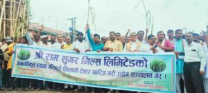अनाधिकृत रुपमा हजारौ उखु किसानको भबिश्य लाई चोर बाटो भएर लिलाम गरिएकोमा तत्काल रद्द गरेर श्रीराम सुगर मिल्सलाई पुन ः संचालनमा ल्याउन माग गरिएको छ ।