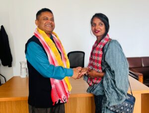आरके श्रीवास्तव,राैतहट,२०८२ जेठ १३ गते । लोकतान्त्रिक पत्रकार संघका केन्द्रीय अध्यक्ष कारेन्द्र वर्मा र पर्सा शाखाका अध्यक्ष समसुदिन मियाँबीच विशेष भेटघाट सम्पन्न भएको छ । उक्त भेटमा संगठन सुदृढीकरण, आगामी योजनाहरू तथा जिल्ला कमिटीको विस्तारबारे महत्वपूर्ण छलफल गरिएको छ ।