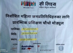 रौतहटमा महिला जनप्रतिनिधिहरुको प्रशिक्षण तालिम सम्पन्न भएको छ । जिल्लाको गौर नगरपालिकामा महिला जनप्रतिनिधिहरुको ४ दिने प्रशिक्षण तालिम सोमबार गौरमा अवस्थित सुष्मा पार्टी प्यालेसको सभा हलमा सम्पन्न भएको हो । माण्डवी संस्थाको आयोजानामा तथा आइएफइएसको प्राविधिक सहयोगमा संचालित शी लिडस् परियोजना अन्तर्गत गौर नगरपालिकाका निर्वाचित महिला जनप्रतिनिधिहरुको राजनितिक क्षमतामा विकासका लागि चौथो मोडयूलको प्रशिक्षण तालिम कार्यक्रम सम्पन्न भएको हो ।